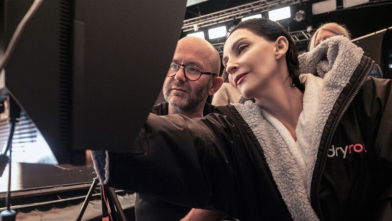 Por isso, fomos ao interior da Inglaterra e ‘colhemos' a natureza em vídeo, trazendo esse material para o estúdio e projetando-o em enormes telas de LED. Filmar em Norfolk e Essex foi a parte mais bonita. Passamos dois dias ao ar livre, registrando principalmente time-lapses. Foi fascinante. Montamos três ou quatro câmeras em diferentes direções e lentes e esperamos por horas. Era como um pequeno laboratório fotográfico a céu aberto. Capturamos céu, nuvens, pôr do sol. E no estúdio alguns elementos também apareceram de forma literal: Eva [Herzigová] e Susie [Cave] foram fotografadas na água; Tilda [Swinton] posou em uma floresta mágica criada especialmente para ela; Isabella [Rossellini] foi retratada entre flores.”